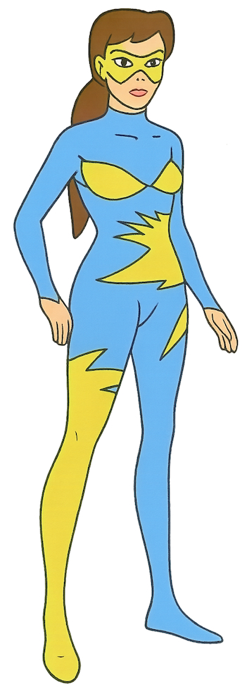 1. Canon import time ahoy! Talk about obscure! Lightwave originated in the final episode of the 1981-83 series Spider-Man and His Amazing Friends, entitled "Mission: Save the Guardstar", as Aurora Dante, Iceman's half-sister who worked for SHIELD. She never migrated over to the comics, nor was she ever mentioned in the movies, where Bobby had a non-mutant brother. The image I used is one of two standing full-body shots from the episode, run through an AI to trim out the background.